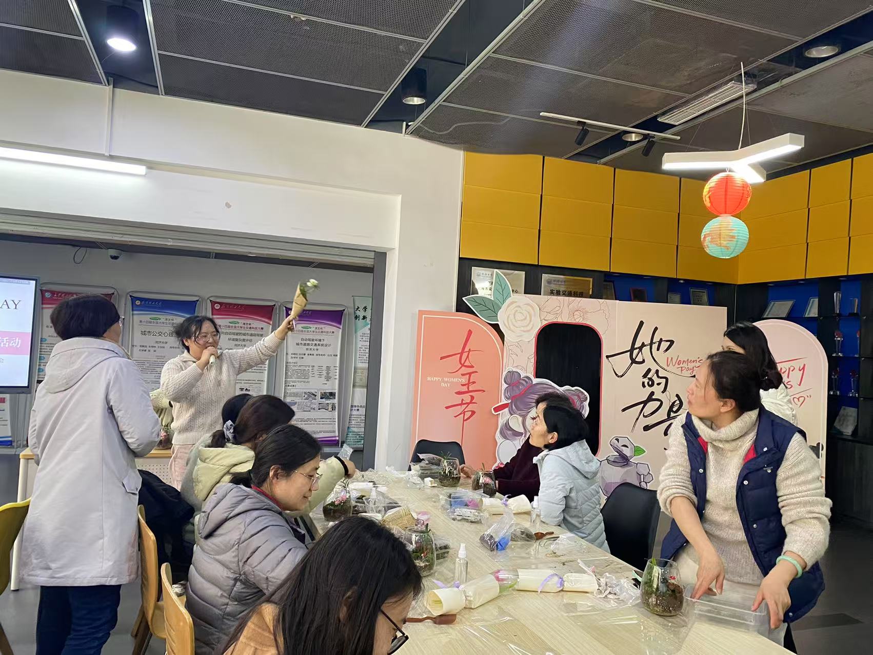 学院工会主席黄书记也专程前来庆祝妇女节,他介绍此次活动旨在通过亲近自然的手工体验,为女教职工们提供释放压力、激发创意的平台,同时传递绿色环保的生活理念,为节日增添别样色彩。现场教师们纷纷赞同:“亲手制作微景观既能放松身心,又能解锁新技能,这样的活动既有趣又有意义!”。活动尾声还设置了花卉名称竞猜有奖环节,将此次活动推向了高潮。一个个镜头定格下她们的笑容与创意成果,记录了绿植与艺术的交融、欢乐与温情的碰撞。