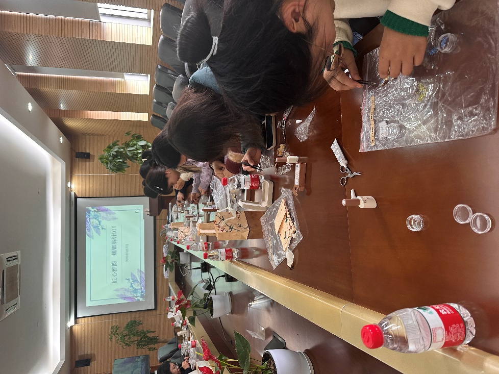 为迎接2025年“三八”国际劳动妇女节,丰富女教职工精神文化生活,展现女性独特风采,3月5日,海洋学院工会与妇委在本部海洋楼B200会议室和临港基地B302会议室联合举办了一场别开生面“匠心雅韵 螺钿胸针“制作活动。 活动伊始,学院工会女工干部王瑜老师介绍了螺钿工艺这一中国传统工艺及其悠久的历史和独特魅力,并引领大家一起欣赏精美的螺钿作品图片。螺钿工艺以其精湛的技艺和别具一格的艺术风格,瞬间吸引了在场所有老师的目光,激发了大家浓厚的兴趣和参与热情。 本次活动精心准备的材料包琳琅满目,为老师们提供了充足的创造空间。老师们纷纷发挥自己的想象力和创造力,精心挑选贝壳片、巧妙镶嵌、细致黏贴,每一道工序体现着她们的巧思。经过一番努力,一枚枚独具匠心的螺钿胸针在老师们的巧手下应运而生。每一枚精美的胸针不仅彰显了女性独特的审美眼光和艺术才华,更寄托了对美好生活的热爱与向往。 活动现场气氛热烈而温馨,老师们一边制作胸针,一边分享着生活中的趣事与工作上的心得,彼此间的距离在轻松愉快的氛围中悄然拉进。 此次“匠心雅韵 螺钿胸针”制作活动不仅是一次难忘的手工体验之旅,更是一次文化艺术与情感交流的契机。通过参与活动,老师们不仅收获了精美的螺钿胸针作品,还提升了对艺术的鉴赏能力。活动结束后,大家纷纷表示,这是一次难忘的节日体验,让大家在忙碌的工作中感受到了节日的温暖与关怀。 未来,海洋学院工会与妇委将继续以节日为契机,策划更多形式多样、内容丰富的活动,为教职工们搭建展示自我、交流情感的广阔平台,进一步营造和谐温馨的校园文化氛围。
