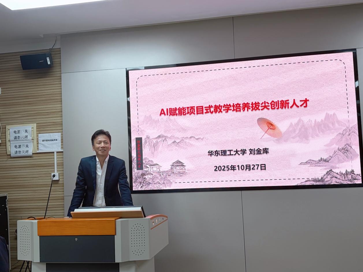 同时,刘金库还分享了华东理工大学搭建的AI课程平台及AI引导研学的成效,也客观分析现存问题,强调不可