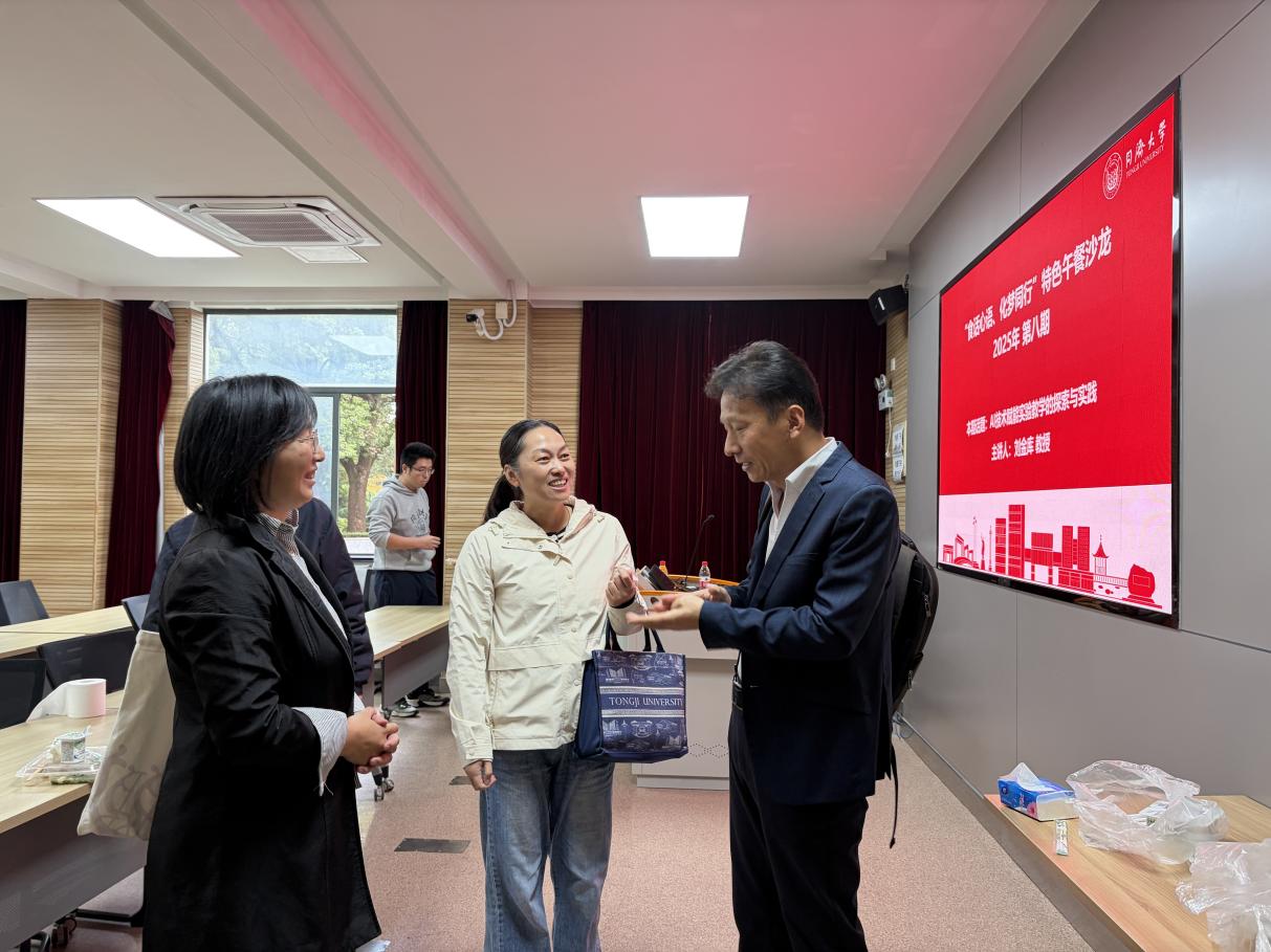 的研究成果。报告结束后,教师们围绕 AI教学中的实际难题与实践经验展开交流,现场氛围热烈;即便活动尾声,仍有教师意犹未尽地与刘教授深入探讨。