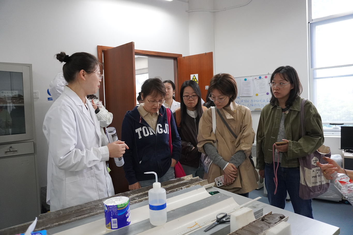 活动首站抵达同济大学海洋科学技术研究中心。在讲解员的引导下,大家参观了海洋地质全国重点实验室,近距离观摩了各类海洋科研设备与仿真平台,感受海洋科技的磅礴力量。丰富的展示内容让大家对深海观测、海洋资源开发等前沿技术有了更多的认识,对海洋科技的广袤领域有了更直观的感受。在观摩与交流过程中,图书馆和海洋学院的青年教师围绕“学科交叉与科研协作”,分别从信息组织和专业应用的角度展开了热烈的讨论,激发了诸多创新思路与合作契机。