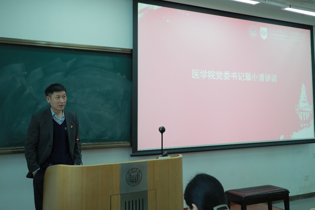 随后,学院党委书记章小清发表讲话,围绕会议主题作出全面部署。章小清书记首先传达了党的二十届四中全会精神。他指出,全会审议通过的《中共中央关于制定国民经济和社会发展第十五个五年规划的建议》,为未来五年发展擘画了宏伟蓝图,也为学院高质量发展提供了根本遵循。结合学院8月份召开的务虚会成果,他强调,“十五五”时期是医学院实现跨越式发展的关键阶段,将以 “夯实基础、提高韧性、逐步引领”为核心目标,开启“十五五”奋斗新征程。