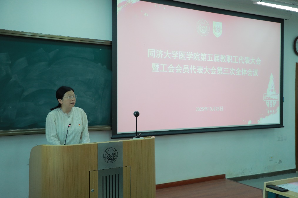 10月28日下午13时,同济大学医学院第五届教职工代表大会暨工会会员代表大会第三次全体会议在沪西校区二教135隆重召开。