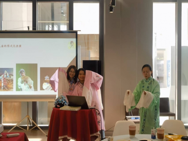 互动体验环节气氛热烈,老师们在专业指导下学习昆曲基础动作,一招一式间感受水袖的飘逸灵动与扇子功的韵味流转。大家纷纷表示,这种理论与实践结合的形式通俗易懂,不仅直观领略了昆曲程式化表演的精妙,更在亲身参与中拉近了与传统文化的距离。