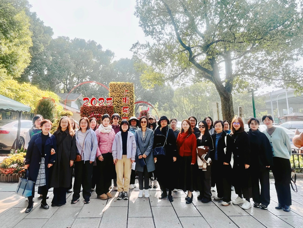 11月24日中午,大家一行来到共青森林公园,公园在原有自然环境基础上增加各类菊花材料的种植和搭建,打造出形态多样、意蕴丰富的菊花景观,特别是沿河岸边打造的菊花自然花境“莫奈花园”, 在冬日午间阳光的映射下呈现出油画般唯美景色,让来此赏菊的各位老师纷纷驻足欣赏,打卡留念。