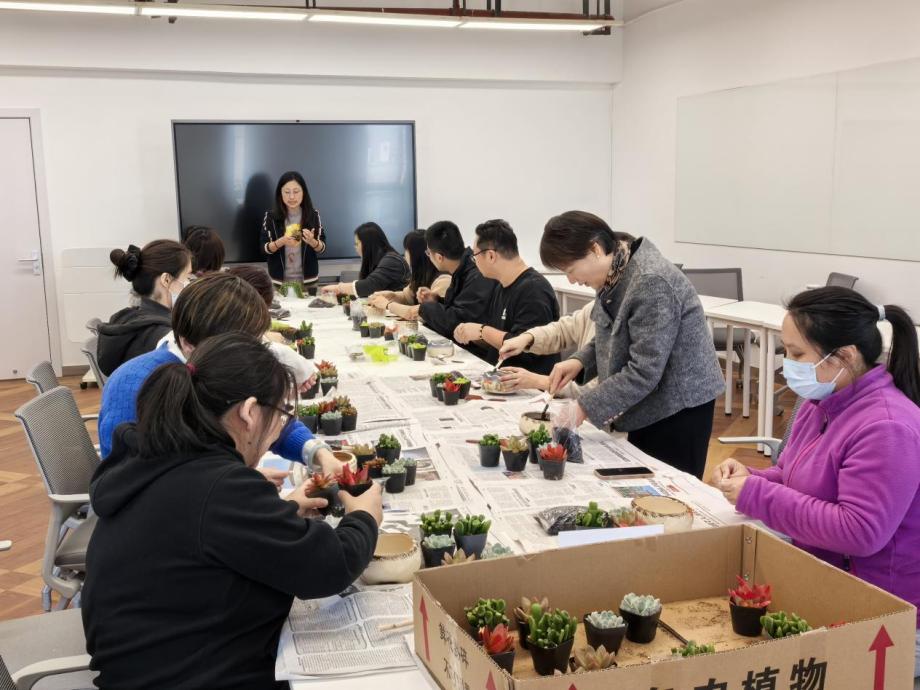 冬意渐浓,校园里满是静谧与美好。为进一步丰富教职工的校园文化生活,为办公空间注入自然生机,11月19日与21日,图书馆工会分别在嘉定校区和四平路校区,精心举办了一场别开生面的“盆景多肉植物制作体验活动”,45名教职工们踊跃参与,在动手实践中感受园艺之美,为忙碌的工作增添了一抹清新色彩。