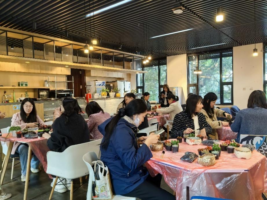 此次盆景多肉植物制作体验活动,不仅为教职工提供了一个展示自我创意、放松身心的平台,让大家在忙碌的工作之余感受到了自然与手工的双重治愈,更以生动的实践形式,丰富了校园文化生活,为图书馆乃至整个校园营造了和谐温馨的文化氛围。未来,图书馆工会将继续围绕教职工需求,策划更多形式多样、内容丰富的活动,助力打造更具活力与温度的工作氛围。(图文/图书馆工会)