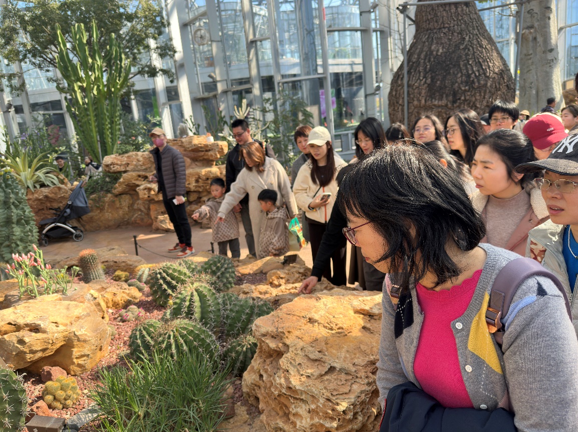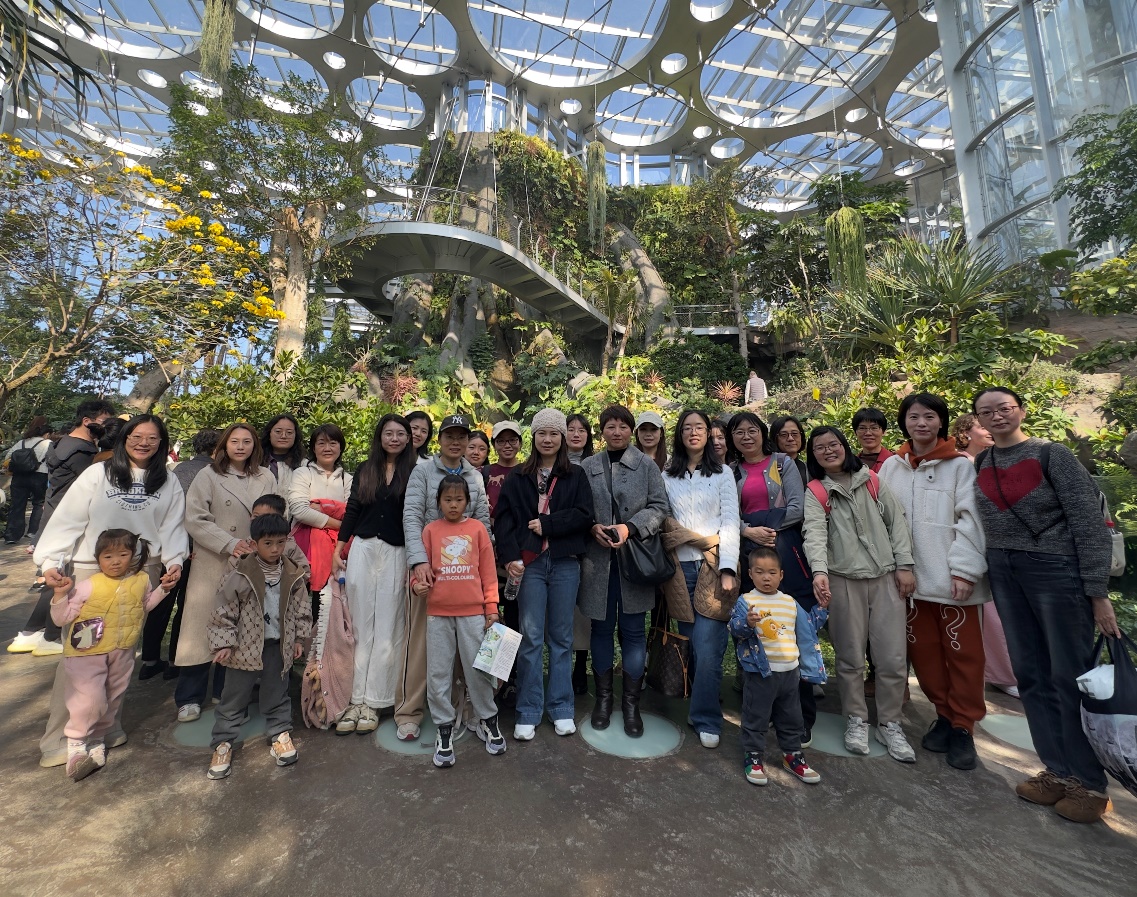 春风有信,花开有期。为庆祝第116个“三八”国际妇女节,丰富女职工业余文化生活,3月14日下午,海洋与地球科学学院工会、妇委精心组织开展了“魅力巾帼 绿动芳华”主题参观活动,带领学院女教职工们共赴一场与春天的绿色之约,游览了上海世博文化公园内的新地标——温室花园与双子山。 活动当天下午1点,满载着欢声笑语的车辆分别从本部赤峰路校区和临港基地出发,驶向目的地。一路上,大家卸下工作的疲惫,畅聊生活与趣事,气氛轻松愉悦。 第一站,大家抵达了如水晶般璀璨的上海温室花园。 这座占地2.2万平方米的生态综合体,瞬间将大家带入了一个奇妙的植物世界。在专业讲解员的带领下,大家依次探访了三大主题场馆: 在“海市沙洲”,大家仿佛穿越至热带干旱地区,形态各异、顽强生长的多肉植物与沙漠植物,展现了生命的坚韧与奇特。 步入“云上森林”,雾气缭绕,巨木参天,潺潺流水与附生植物共同勾勒出神秘的热带雨林风光,令人仿佛置身于真实的丛林秘境。 最后的“云雾峡谷”则是花的海洋,色彩斑斓的热带兰花、凤梨等花卉竞相绽放,争奇斗艳,为大家献上了一场视觉与嗅觉的盛宴。