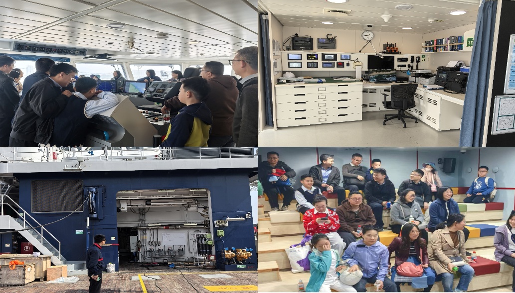 当日下午,阳光和煦,海风轻拂,浦东极地研究中心码头暖意融融。教职工们带着孩子,怀着期待与好奇的心情齐聚码头,在工作人员的有序引导下,参观队伍依次登船,走进驾驶室、实验室、甲板作业区、生活区等重点区域,全方位感受“同济”号的智能化魅力与科研实力。