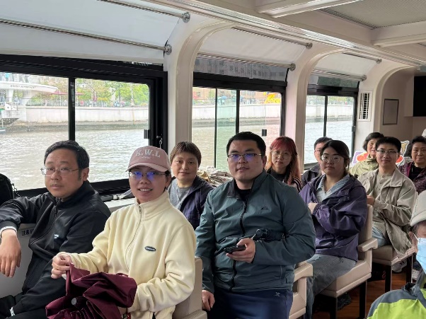 活动当日,教职工们满怀期待齐聚外滩源码头,登上定制游船,在轻松愉悦的氛围中开启这段水上之旅。游船缓缓驶离码头,沿着苏州河河道平稳前行,全长一小时的航程,串联起苏州河中心城区段最具特色的滨水景致。大家凭栏而立,放眼望去,一江一河交汇的壮阔景致尽收眼底,外白渡桥、上海邮政博物馆等历史建筑古朴厚重,诉说着上海的百年风华;蝴蝶湾花园、M50创意园、天安千树、梦清园等现代地标与工业遗存交相辉映,传统底蕴与时尚活力完美融合,两岸绿树成荫,楼宇错落有致,碧波荡漾的河水与沿岸风光构成了一幅灵动的城市画卷,让人心旷神怡。大家一路观赏,一路畅谈,深切感受着苏州河经过综合治理后焕发出的新生机,也品味着城市发展带来的美好生活,在悠然的水上行程中,收获了身心的放松与心灵的慰藉。