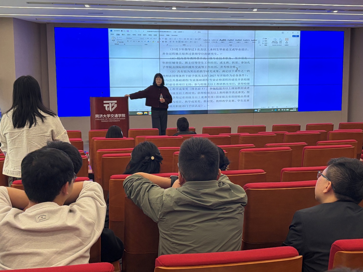 近日,交通学院第二十二期“悦行教师沙龙”在通达馆103会议室顺利举行。本次活动特邀我院朱兴一副院长担任主讲嘉宾,围绕“关于学校与学院教师任职、续聘新政策”展开专题分享,吸引了学院60余位青年教师积极参与。活动由张小会副教授主持。