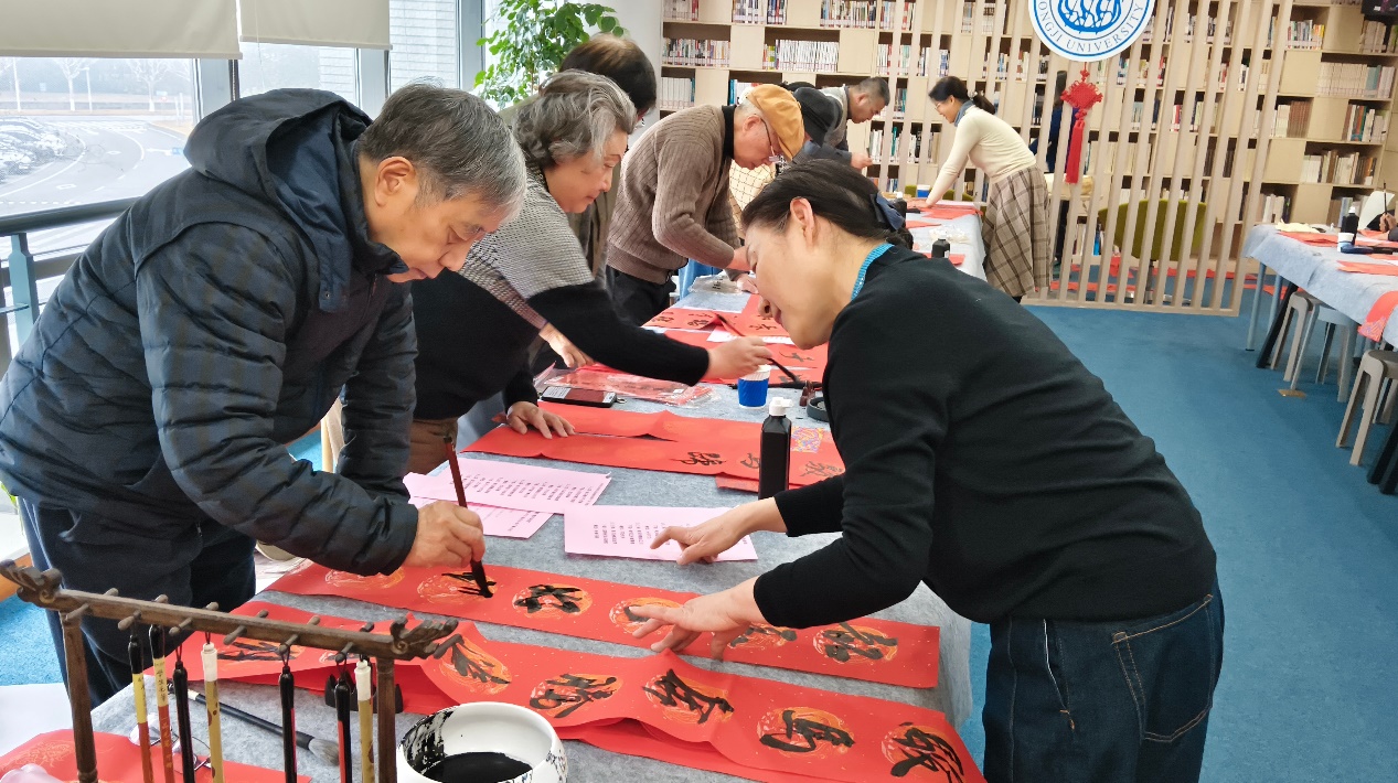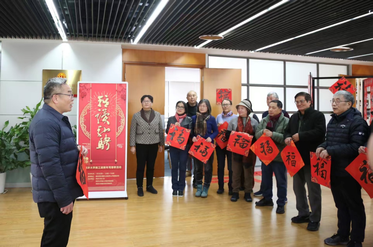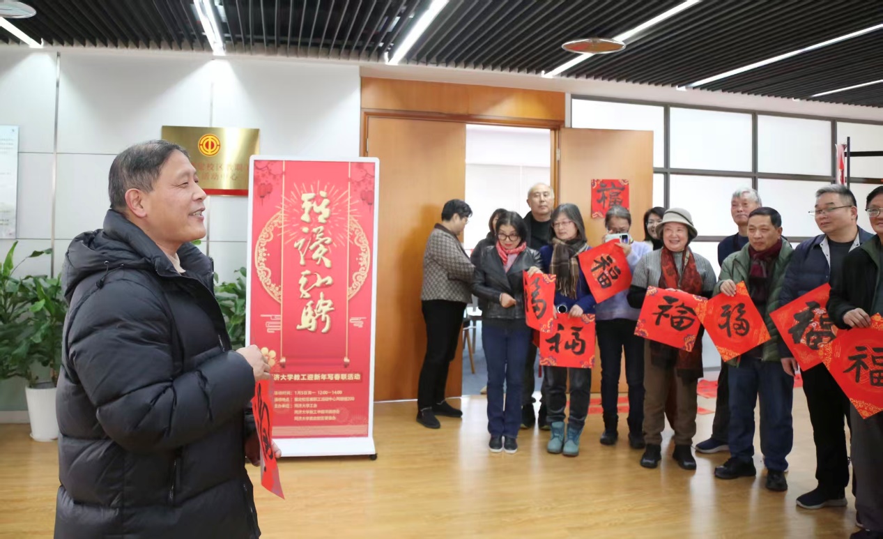 金风送暖辞旧岁,墨韵飘香迎新春。1月5日中午,嘉定校区教职工活动中心内翰墨飘香、春意融融,同济大学教工迎新年写春联活动热烈举行。本次活动由校工会、校教工书画协会、嘉定校区管委办共同主办。嘉定校区管委办主任周斌、副主任黄灿彬、同济大学中国书画协会会长江理平、校工会副主席赵娟、部分二级工会负责人及教师代表50余人参加活动。