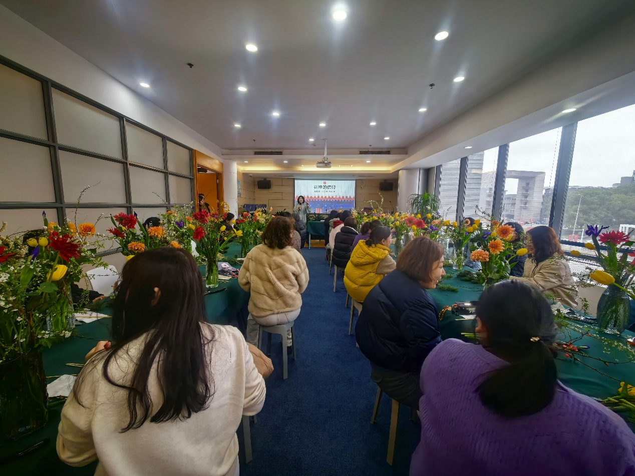 春风送暖,草木萌新。在第116个“三八”国际妇女节来临之际,同济大学工会与嘉定校区管委办联合策划的“春明景和花韵匠心”海派非遗插花体验活动于3月4日中午在嘉定校区同德楼教职工活动中心温馨举行。30余位女教工齐聚一堂,在馥郁花香与高雅意韵中,沉浸式感受非遗文化魅力,以指尖创意定格春日美好,共度了一段融合文化质感与节日温情的午间时光。
